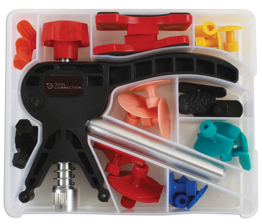 • Újrafényezés nélkül használható horpadás javító készlet 24 darab vegyes húzófüllel.