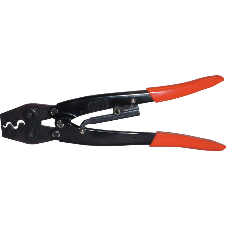 - Saruzó fogó reteszelt préskerettel és állítható présnyomással szigeteletlen kábelsarukhoz.